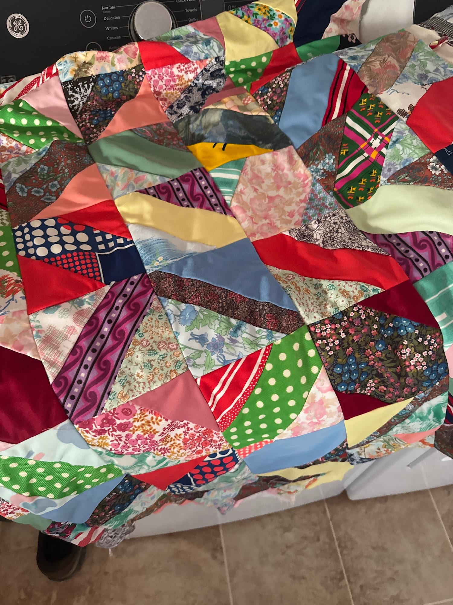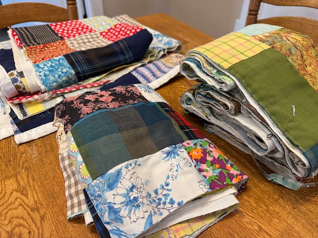 Everywhere else I looked, quilts and toppers were being listed for crazy amounts of money, so I felt like I had found a deal. I came home and kept looking at them, envisioning all the cool things I could make out of them—but I just couldn’t do it.