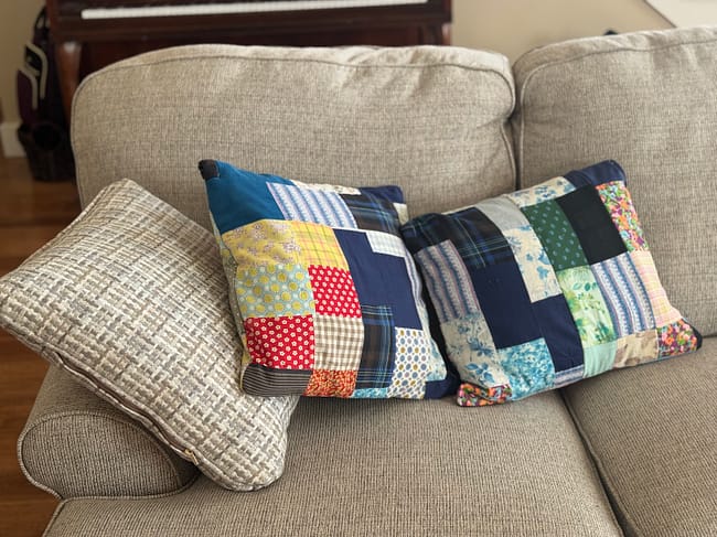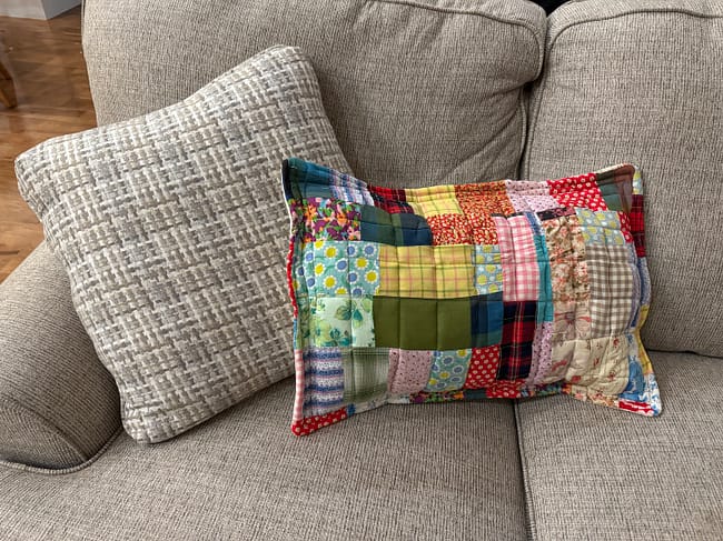 I love the pillows and the bags I was able to make from one of the old, tattered quilts that no longer had any life left in it because it was so fragile. It was so rewarding and satisfying to see those pieces come together into something new.