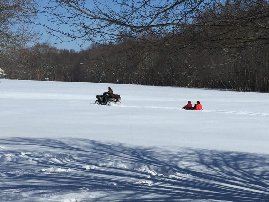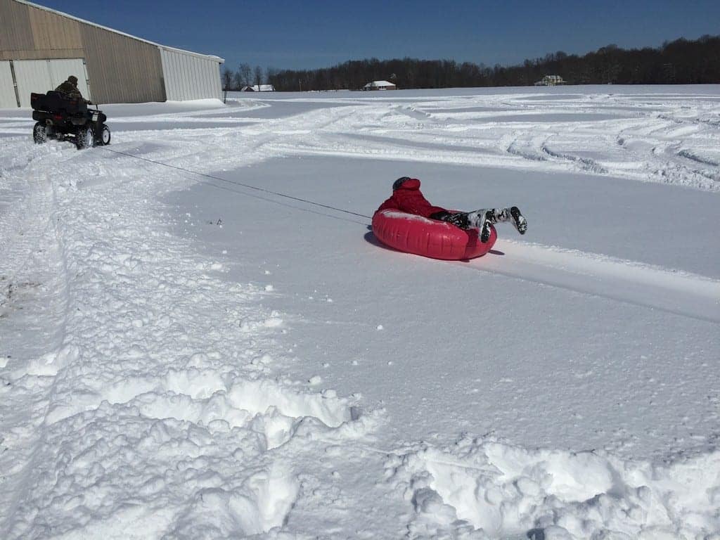 How do you enjoy a snow day? With some sledding and snow cream of course! Whether you have a super small hill barely large enough for a small Snow Saucer or a huge field and a 4 Wheeler, playing in the snow is just the best thing to do on a snow day. Thanks to our super cool neighbors for letting us play in their yard yesterday.