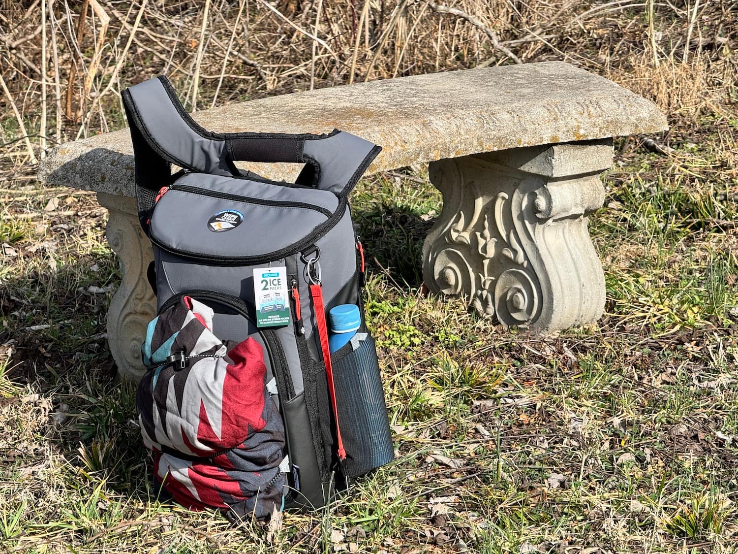 This past weekend we had a few minutes of almost beautiful weather so I was excited to take a mini hike down to the bench. Now that I’ve tested the backpack cooler and confirmed that it is the perfect tote for our next hike, I can’t wait for the rain and snow to clear so I can get out again!
