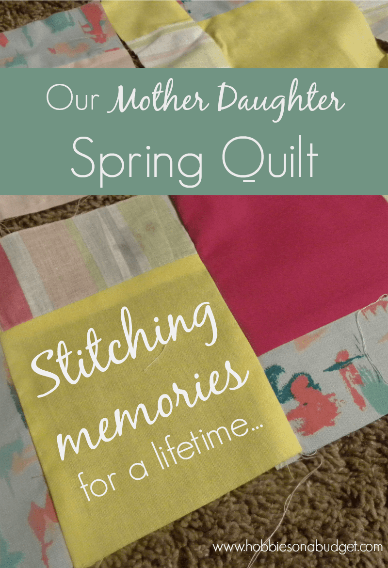 My 9 year old daughter and I have been working on a Spring quilt. We started it one day several months ago when winter was at his coldest and most dreary days and we really just needed some color in our lives. This past weekend, we made some real progress. I love that I am Stitching Memories with my daughter that will last a lifetime and beyond.