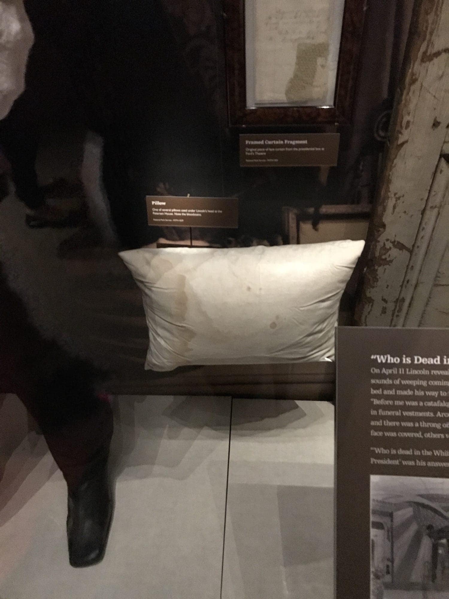 as well as the pillow where President Lincoln laid his head when he died.