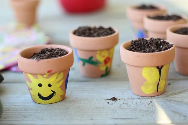 Looking for a simple craft project or gift idea for Spring and Mother’s Day? If you and the kids are ready to get a little crafty, here’s a simple gift using small terra cotta pots, paint, seeds, and potting soil! These thumbprint flower pots don’t take a big time commitment or cost a lot of money but will create memories for the next seasons of life.