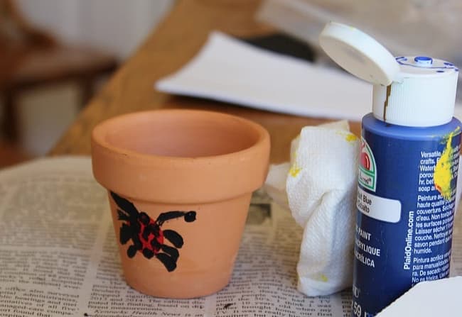 - Once the paint has dried, it’s time to add the potting soil.