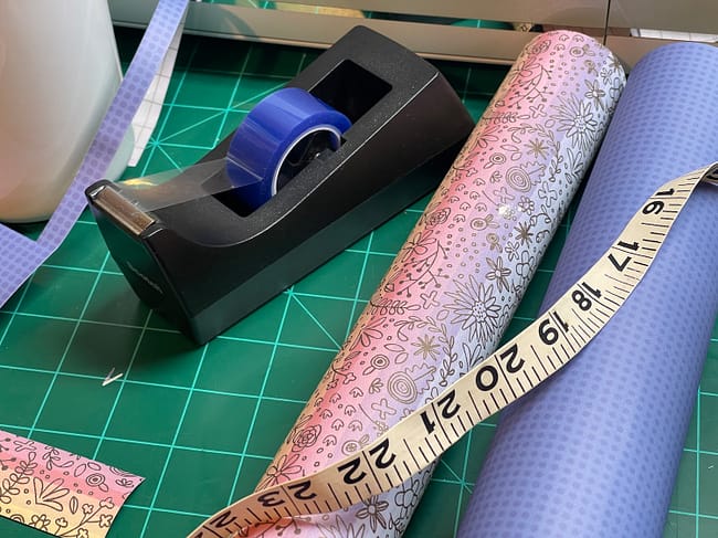 Measure the height and width of your skinny tumbler and then cut the two pieces to fit. Remember that you will only show the phrase on one half of the mug.