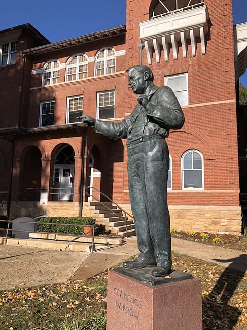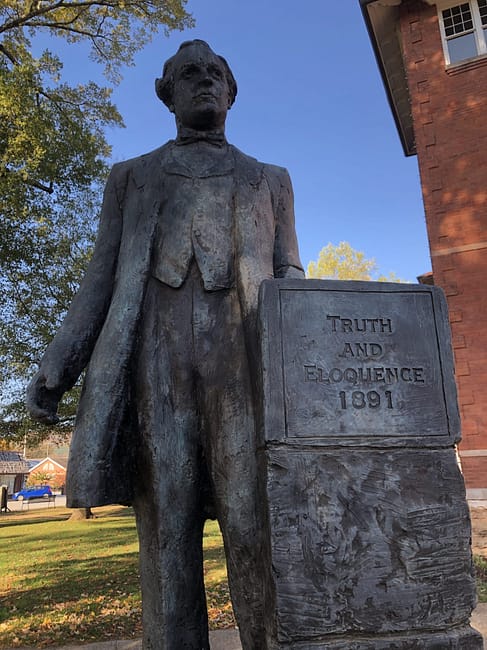 In front of the courthouse, you will find statues of both of the main players in the Scopes Trial. One one side you see Clarance Darrow and on the other side, you find Williams Jennings Bryan.