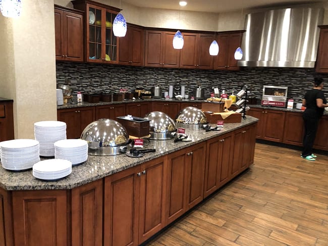 We arrived at the Drury Inn just in time for their KickBack Supper option. This 5:30 pm Kickback® is available each evening for registered guests at no additional charge. Instead of having to go back out for supper, we were able to unload our suitcases and then come down to the restaurant area for a supper of baked potatoes, fried chicken strips, soup, salad and a full nacho bar. There was something for everyone in the family and it saved us the cost of an additional meal. Check here for a sample menu for the 5:30 Kickback®!