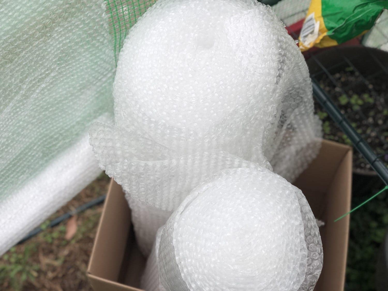 This past month we had our first snow of the season. It wasn’t much, but it was enough to make me realize I needed to find a way to insulate it just a bit more. I decided to add a layer of insulation with bubblewrap and duck tape.