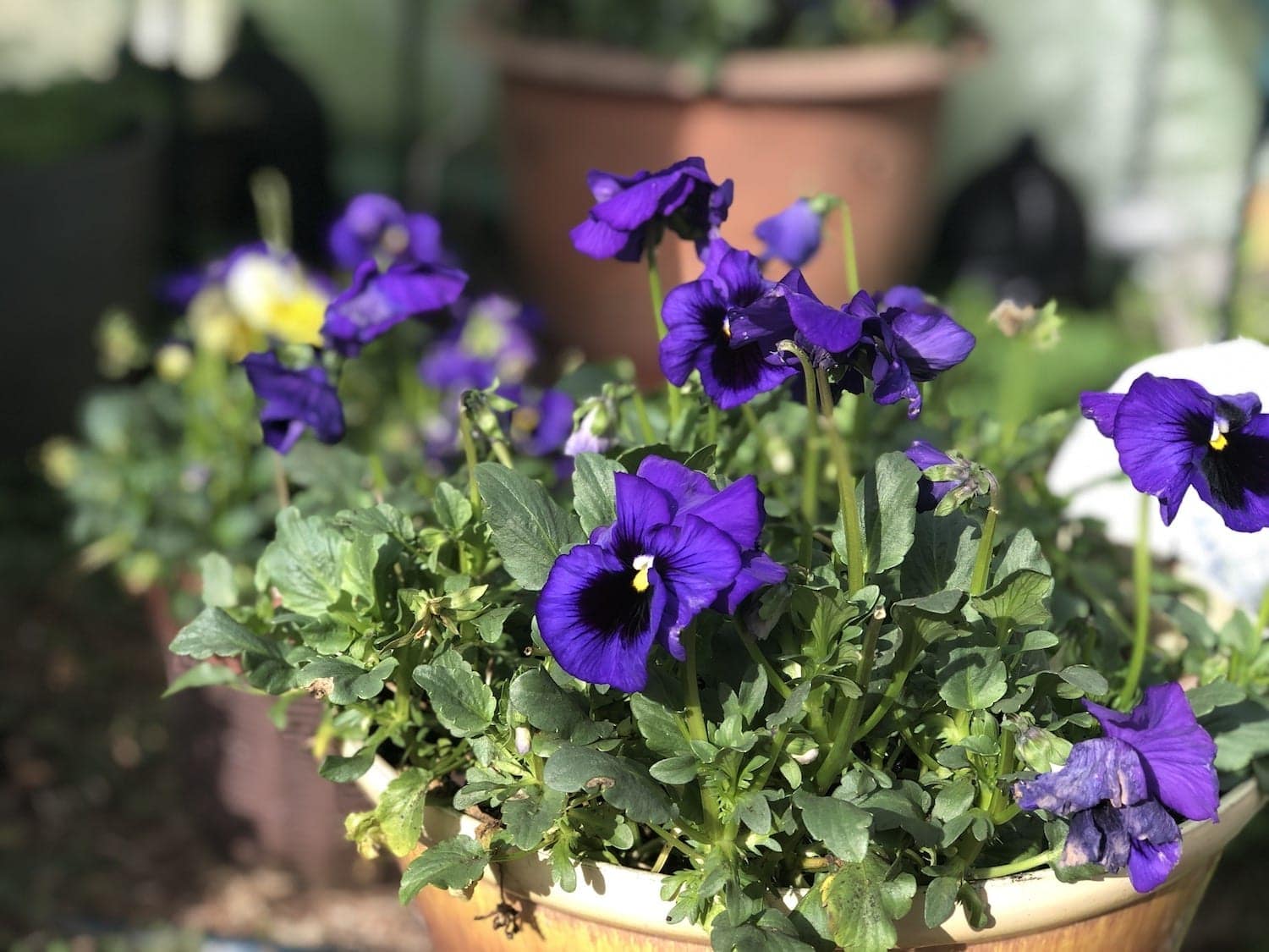 My biggest success so far is my pansies. I bought one tray in the clearance section of Lowes the first week of November and they now fill up multiple pots. I love watching them grow and bloom. Pansies have such cheery faces even in the middle of the winter.
