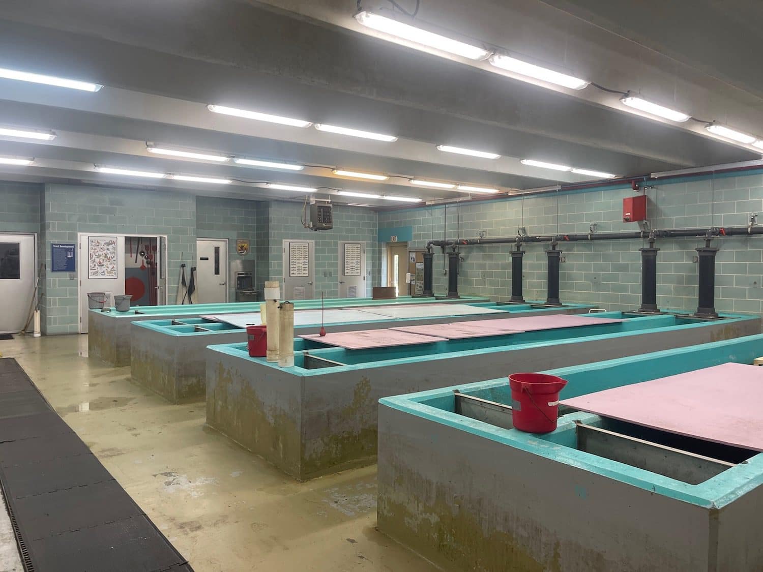 Once you finish going through the Visitor Center, you can walk through the fish hatchery building where they are growing trout from eggs.